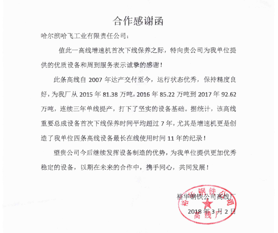 哈爾濱哈飛工業(yè)有限責(zé)任公司旗下的機(jī)電設(shè)備制造產(chǎn)業(yè)是目前國內(nèi)規(guī)模大、專業(yè)的高速線材軋機(jī)和棒材軋機(jī)整機(jī)及備件的生產(chǎn)制造企業(yè)。公司現(xiàn)坐落于哈爾濱市平房區(qū)汽車零部件工業(yè)園B區(qū),占地面積30000多平方米。現(xiàn)有員工近550人,其中具有中高級職稱的研發(fā)及工程技術(shù)人員100余人。   公司曾獲得冶金部授予的“高線軋機(jī)設(shè)備優(yōu)單位”稱號、國家技術(shù)進(jìn)步二等獎(jiǎng)等獎(jiǎng)項(xiàng),公司生產(chǎn)的十八項(xiàng)高線軋機(jī)重要部件通過了技術(shù)鑒定... +MORE